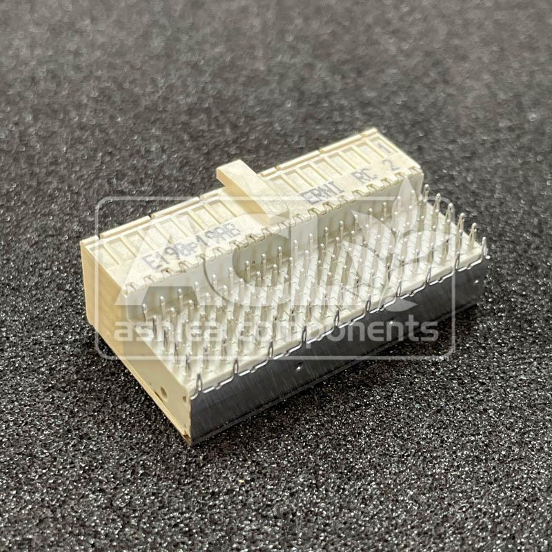 This ERNI receptacle connector is commonly used in applications requiring a high density, right-angle connection to the edge of a PCB. Its design is suitable for various electronic assemblies.