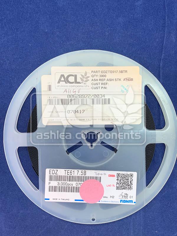 The EDZTE617.5BTR is a 7.5V Zener diode manufactured by ROHM. This component provides voltage regulation with a power dissipation of 150 mW. Its tight tolerance of ±2% ensures precise voltage control. The EDZTE617.5BTR is designed for surface mount assembly and comes in an EMD2 package.