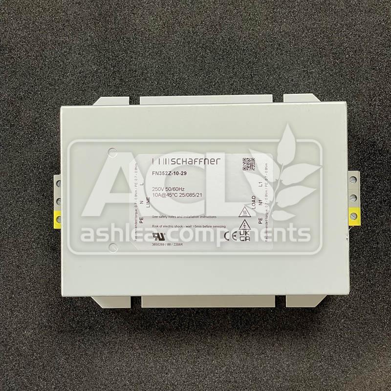 The FN352Z-10-29 is a single-phase, multi-stage EMC filter manufactured by SCHAFFNER. This filter is designed to suppress electromagnetic interference in electrical systems. It is rated for a maximum current of 10 Amperes and is suitable for various applications requiring effective noise mitigation. The component provides a solution for compliance with electromagnetic compatibility standards.
