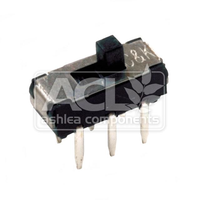 This slide switch is commonly used in electronic devices requiring manual circuit selection. Its DPDT configuration allows for versatile control in various applications.
