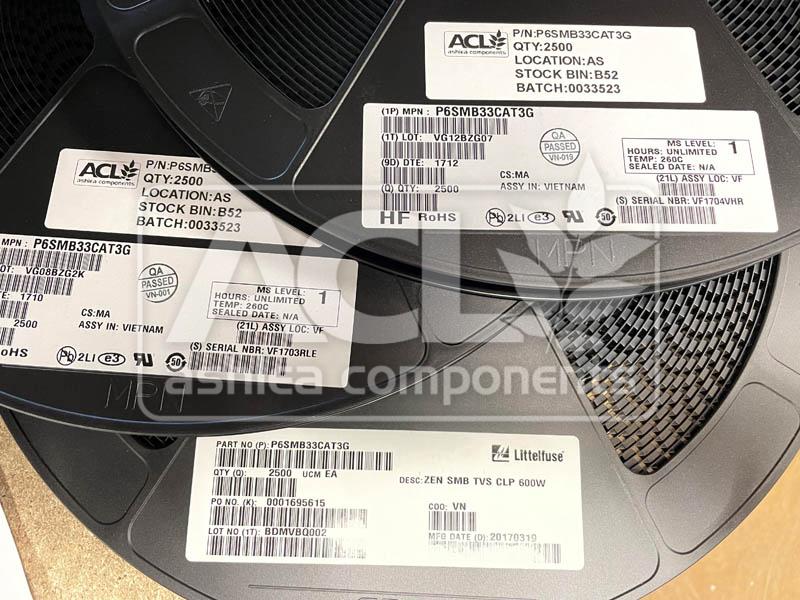 The P6SMB33CAT3G is a bi-directional Transient Voltage Suppressor (TVS) diode manufactured by LITTELFUSE. This component provides overvoltage protection with a standoff voltage of 33V and a peak pulse power dissipation of 600W. It is designed to safeguard sensitive electronic circuits from voltage transients induced by inductive load switching and lightning on ICs, MOSFET, signal lines of sensor units, and control lines. The diode is housed in a compact SMB (DO-214AA) package for surface mount applications.