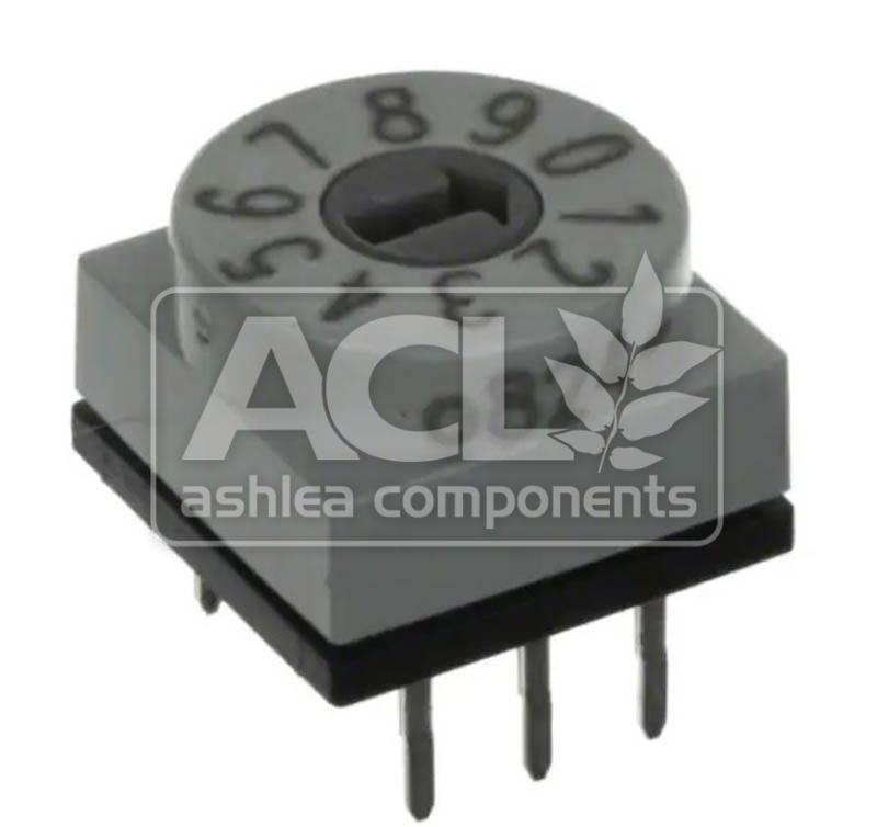 This rotary coded switch is commonly used in applications where a user-selectable digital input is required. Its BCD output simplifies interfacing with digital logic circuits and microcontrollers for position encoding.