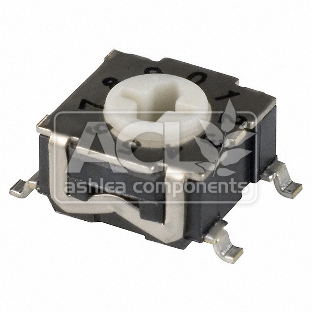 This rotary DIP switch is commonly used in electronic systems requiring manual selection of digital codes. Its compact size and surface mount design make it ideal for densely populated circuit boards. The BCD output simplifies interfacing with microcontrollers and other digital logic devices.